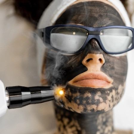 Karbonový peeling je exkluzivní ošetření, které kombinuje hloubkové čištění pomocí uhlíkové masky s precizními impulzy Q-Switch ND YAG laseru. Uhlíkové mikročástice pronikají hluboko do pórů, kde na sebe vážou maz, toxiny a odumřelé buňky. Následně laser jemně "odpálí" vrstvu masky, stimuluje intenzivní buněčnou obnovu a podporuje tvorbu kolagenu.