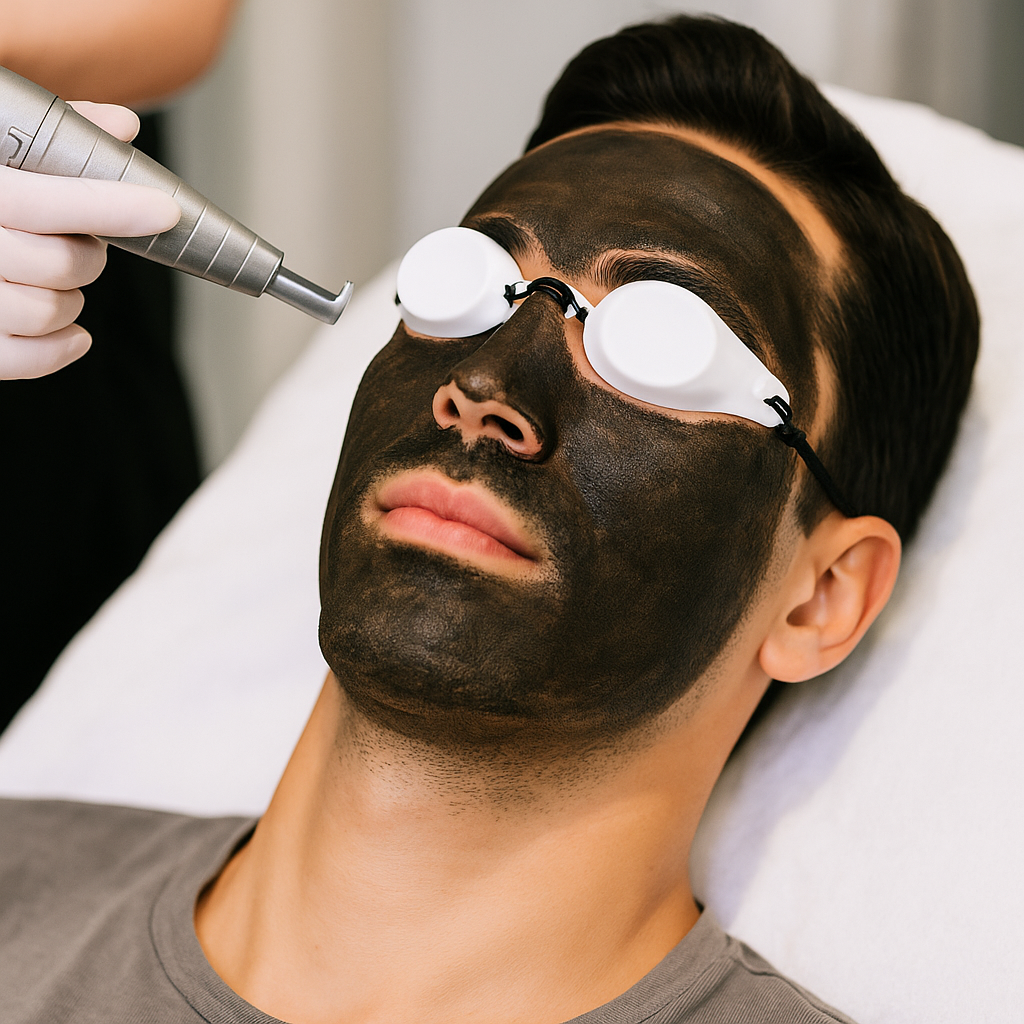 Karbonový peeling pro muže kombinuje hluboké čištění pomocí uhlíkové masky s precizními impulzy Q-Switch ND YAG laseru. Uhlíkové mikročástice pronikají do pórů, kde absorbují maz, toxiny a odumřelé buňky, zatímco laser jemně "odpálí" vrstvu gelu, stimuluje buněčnou obnovu a aktivuje tvorbu kolagenu.