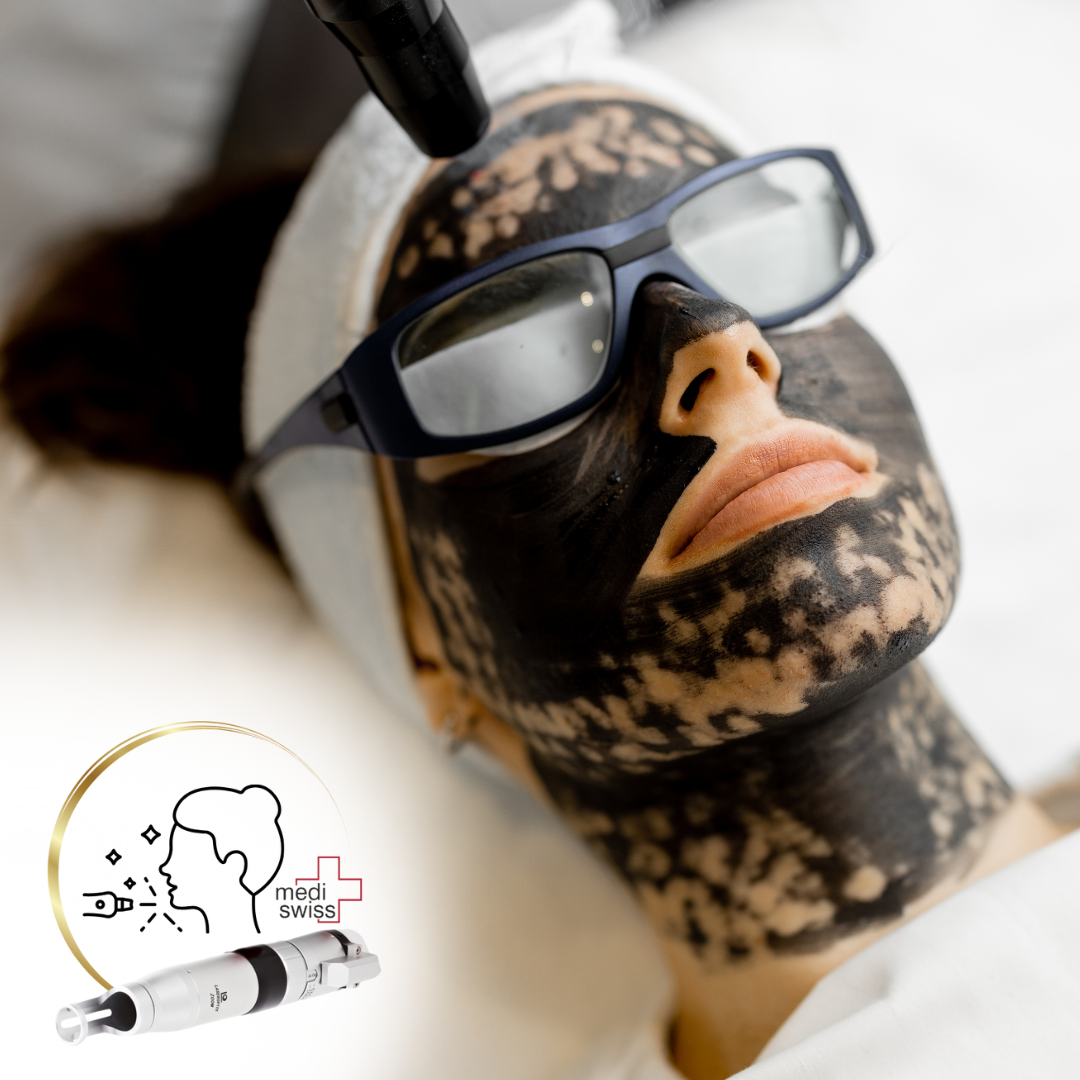 Kombinuje laserový peeling s karbonovou maskou, která hloubkově čistí, rozjasňuje, stahuje póry a stimuluje tvorbu kolagenu. Součástí procedury je také čištění pleti ultrazvukovou špachtlí a aplikace zklidňující jílovo-mátové masky, jež zanechá pokožku jemnou, hydratovanou a sjednocenou. Ošetření je rychlé, bezbolestné a maximálně šetrné. Pleť je již po první návštěvě hladká, svěží a viditelně omlazená.